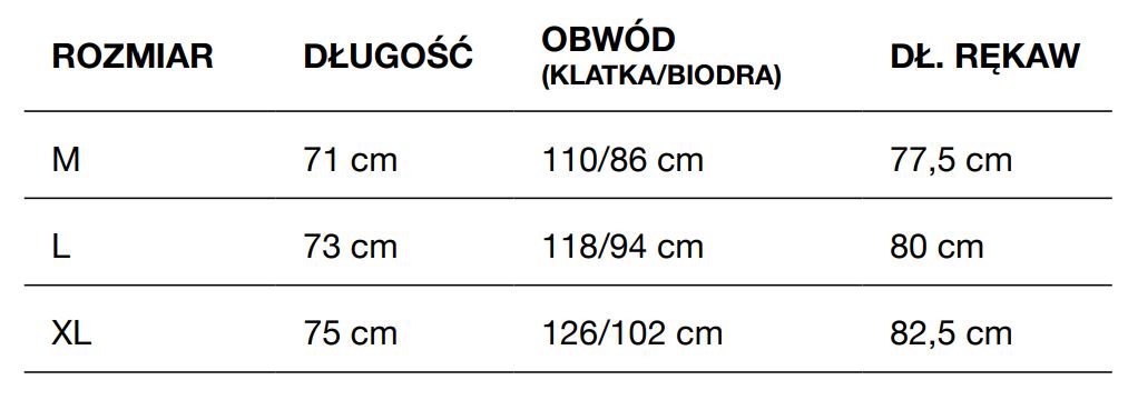 - wygodny kaptur ze ściągaczem zapewnia ochronę przed zimnem i niekorzystnymi warunkami pogodowymi,