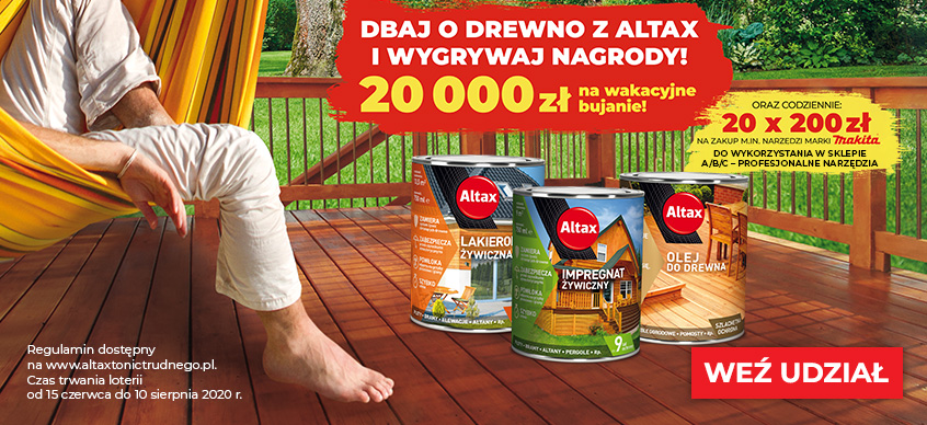 Weź udział w loterii ALTAX i zdobądź jedną z 20 nagród dziennych w postaci vouchera o wartości 200zł na zakupy w naszym sklepie internetowym i nagrodę główną 20000zł na wakacyjne bujanie!
