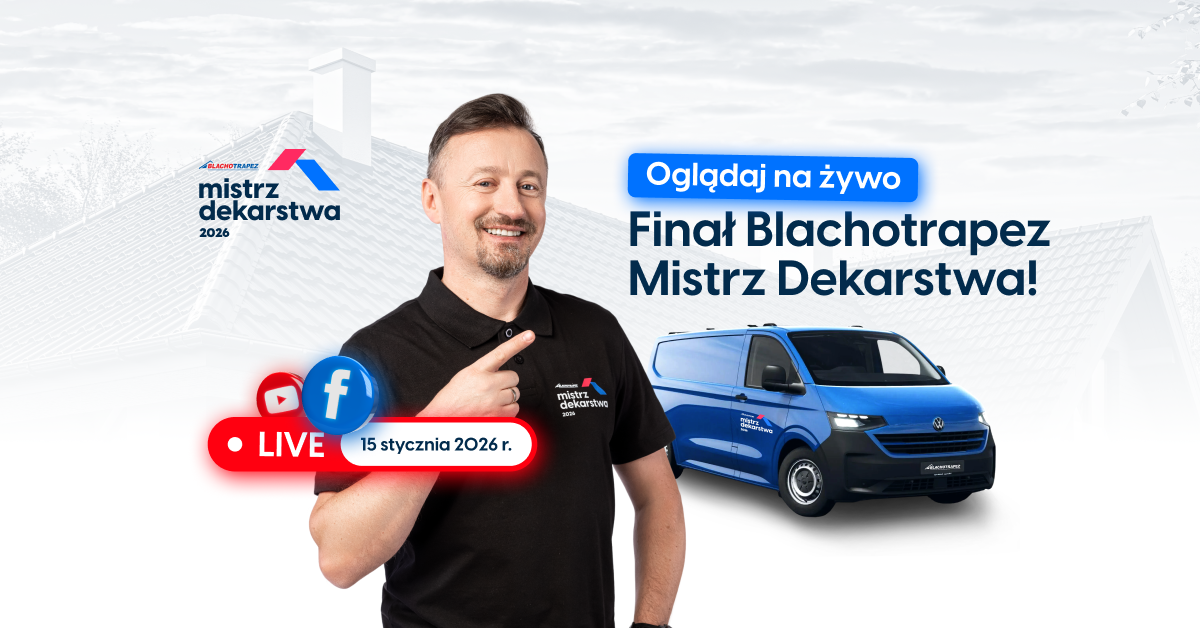 Już 15 stycznia 2026 r. podczas targów Dach Forum w Targach Kielce odbędzie się Wielki Finał konkursu Blachotrapez Mistrz Dekarstwa – wyjątkowej inicjatywy, której celem jest promocja kunsztu dekarskiego i nowoczesnych standardów wykonawstwa dachów. Jako Partner Srebrny zachęcamy do wzięcia udziału w wydarzeniu oraz wspólnym kibicowaniu podczas transmisji LIVE!