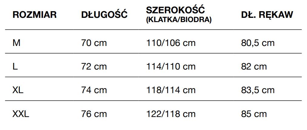 Trwałość zwiększa tonowana konstrukcja ściegu kryjącego, a wydłużony kołnierz oraz płaskie szwy podnoszą komfort i właściwości termiczne.