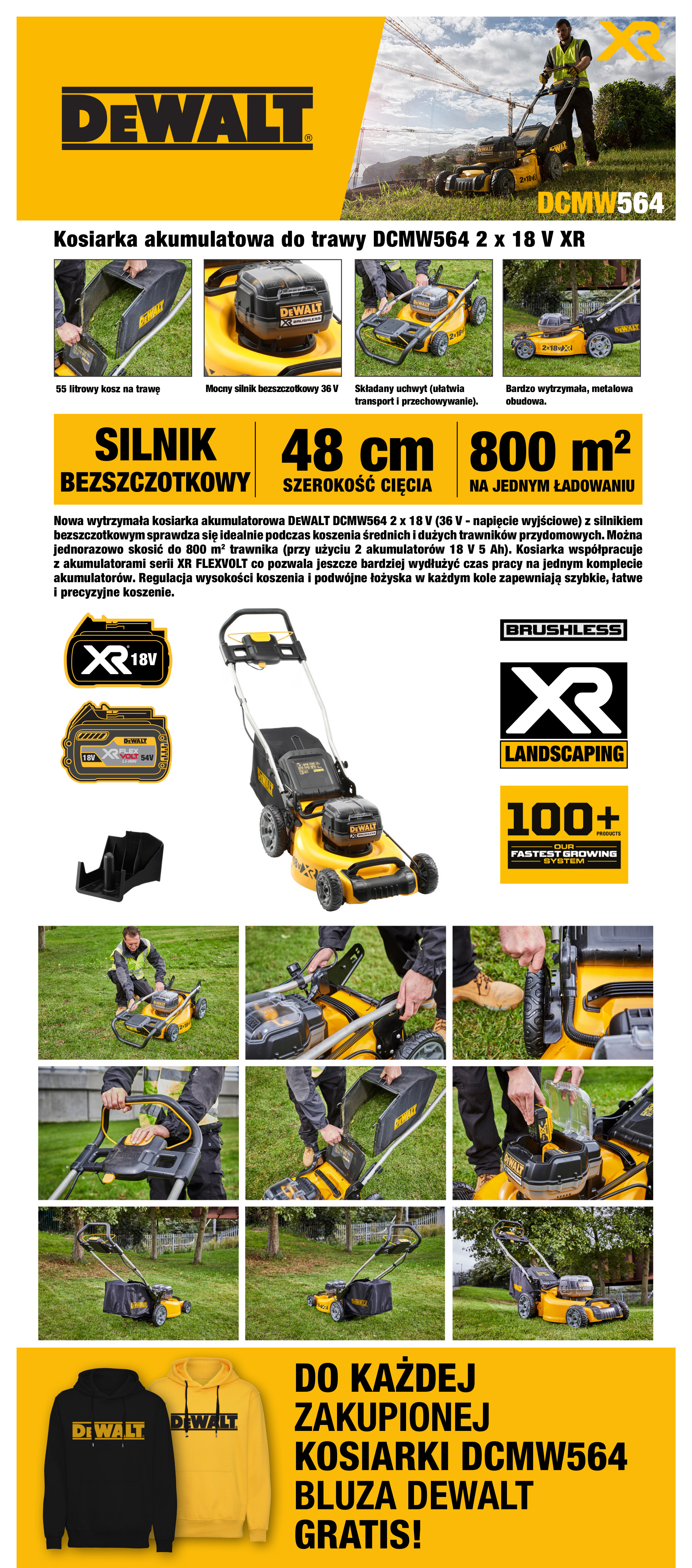 Do każdej zakupionej kosiarki DCMW564 DeWalt dodajemy bluzę DeWalt gratis!