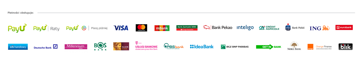 Kupując w naszym sklepie internetowym możesz wybrać dogodną dla siebie formę płatności od PayU, np. raty, blik, przelew, płatność kartą, portfele elektroniczne lub płatność odroczoną o 30 dni - płacę później.